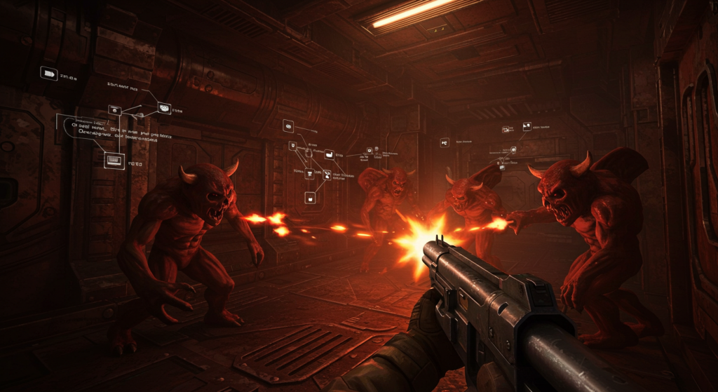 The explicit adoption of Design Patterns in game development began gaining prominence in the 2000s, although similar practices had been used informally since the 1990s. The open-source code of games like Doom (1993), released by id Software in 1997, reveals architectures anticipating patterns such as State and Observer, applied for AI control and HUD updates. Although the code does not explicitly mention Observer, its architecture reflects common event-driven patterns found in game engines. For example, WAD maps allow almost anything in the game to be overridden, creating a reactive system similar to Observer, where multiple subsystems “watch” for changes in the data files. The engine also employed Binary Space Partitioning (BSP) to split maps into a binary tree for efficient rendering, updating only what changes, much like Spatial Partitioning, a structural pattern that optimizes iterative and selective processing. This shows that object-oriented solutions for recurring problems were already in use, even without formal naming conventions.